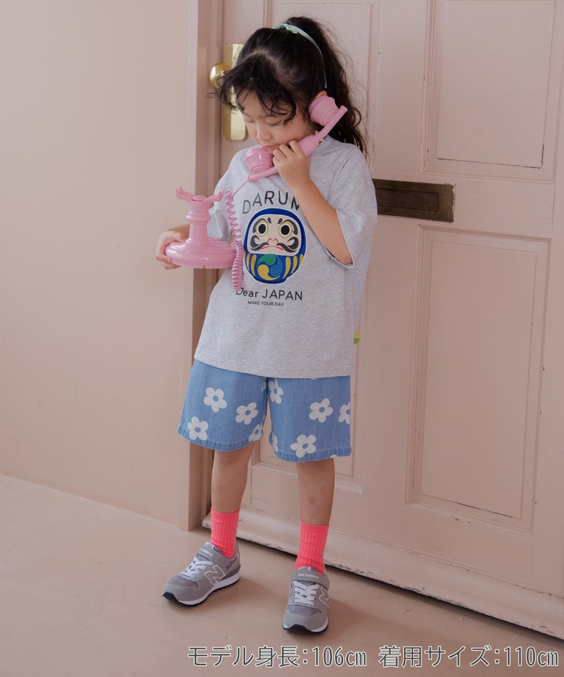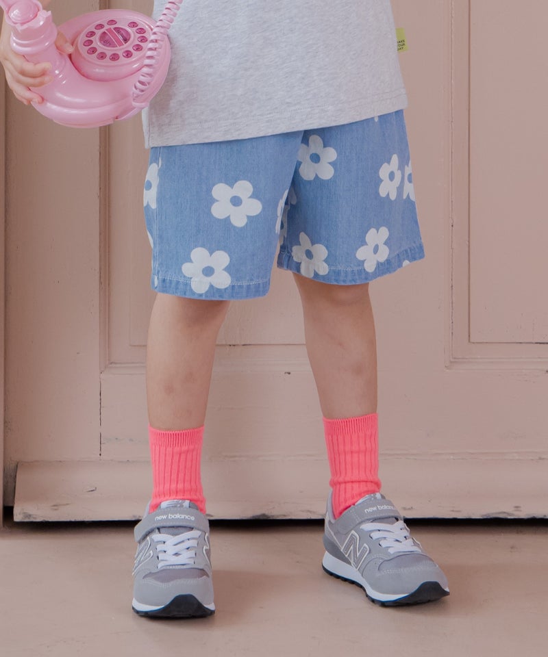 文字と花とトラ柄総柄5分丈パンツ■80~140cm