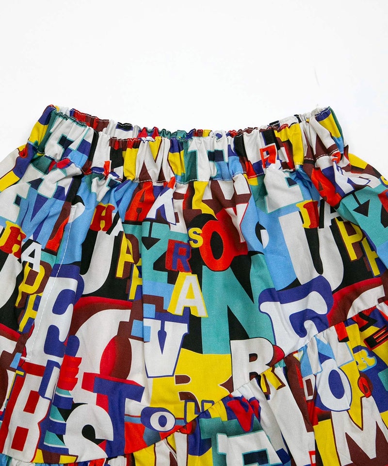 サングラスをかけたパーティタイガーと、カラフルなアルファベット柄でセットアップも可能。