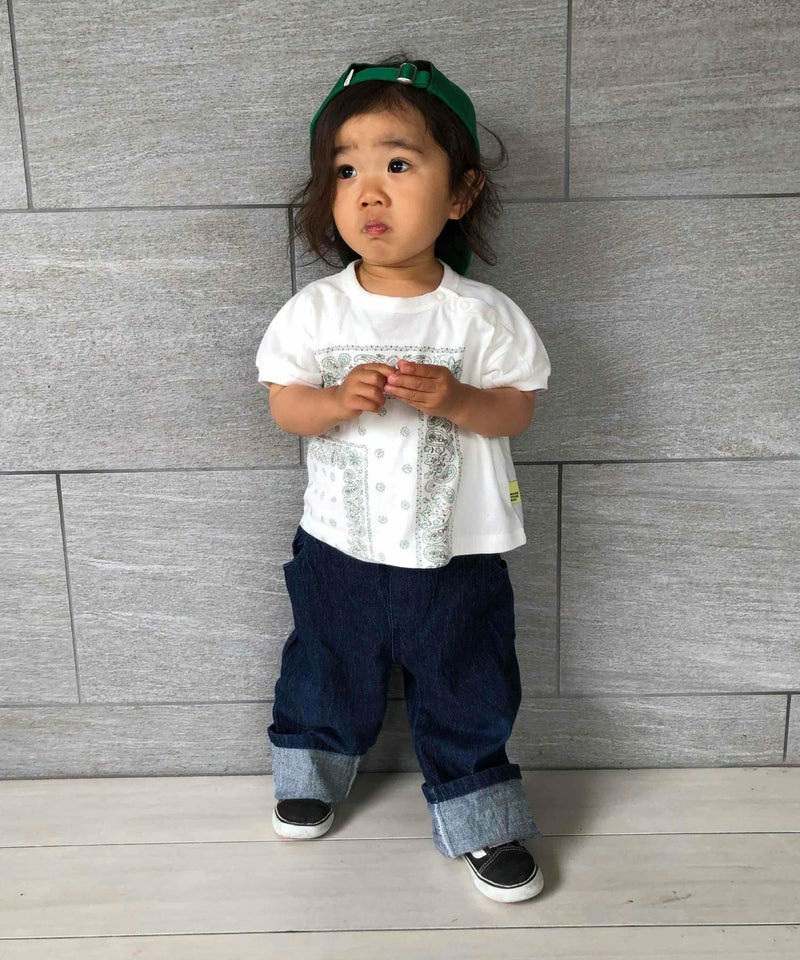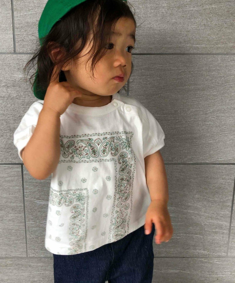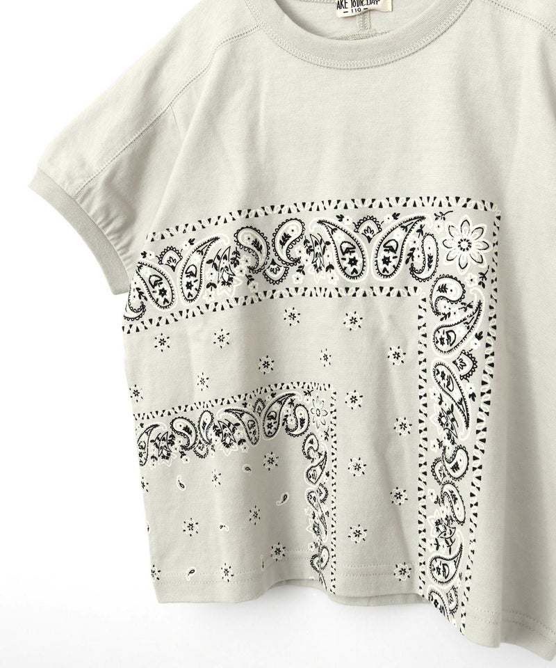 【セール】バンダナ柄ヨーク切替半袖Tシャツ■90~140cm