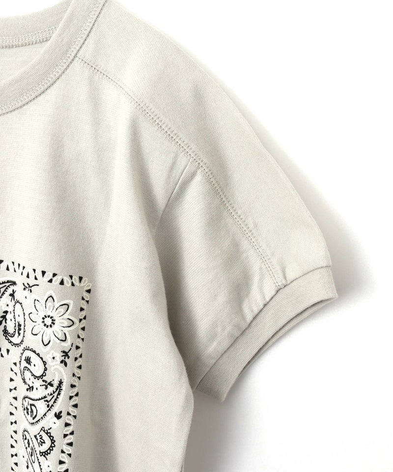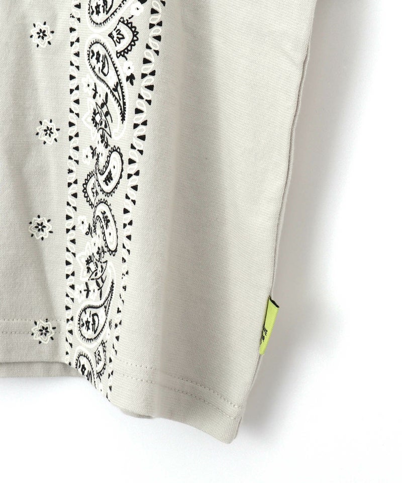 大胆にバンダナ柄をプリントしたTシャツ。
