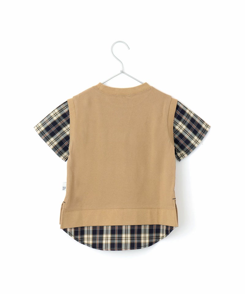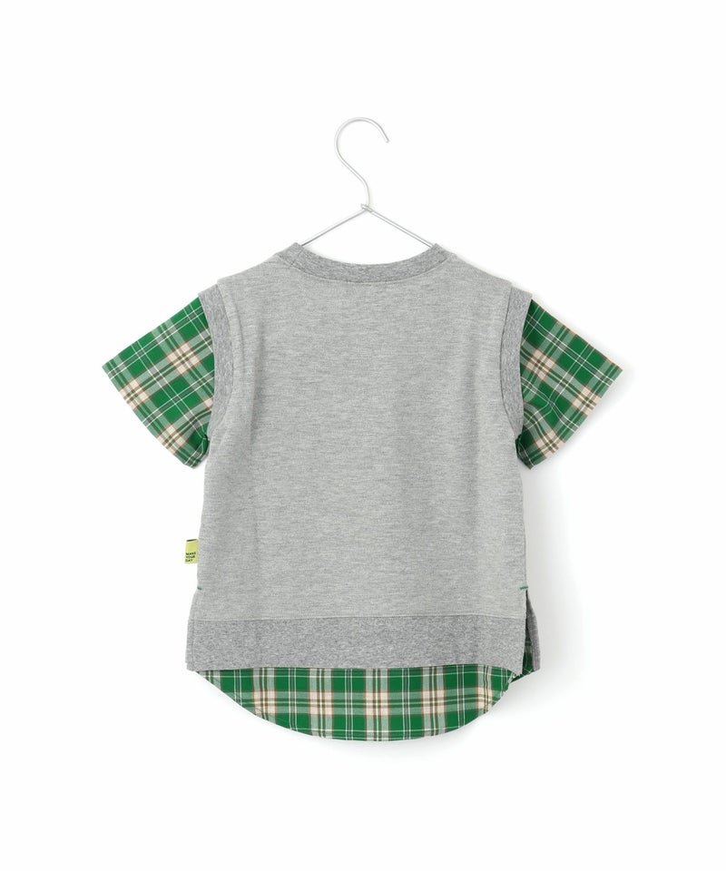 鹿の子素材のベストに、チェックのシャツを合わせたような上品なTシャツ◎