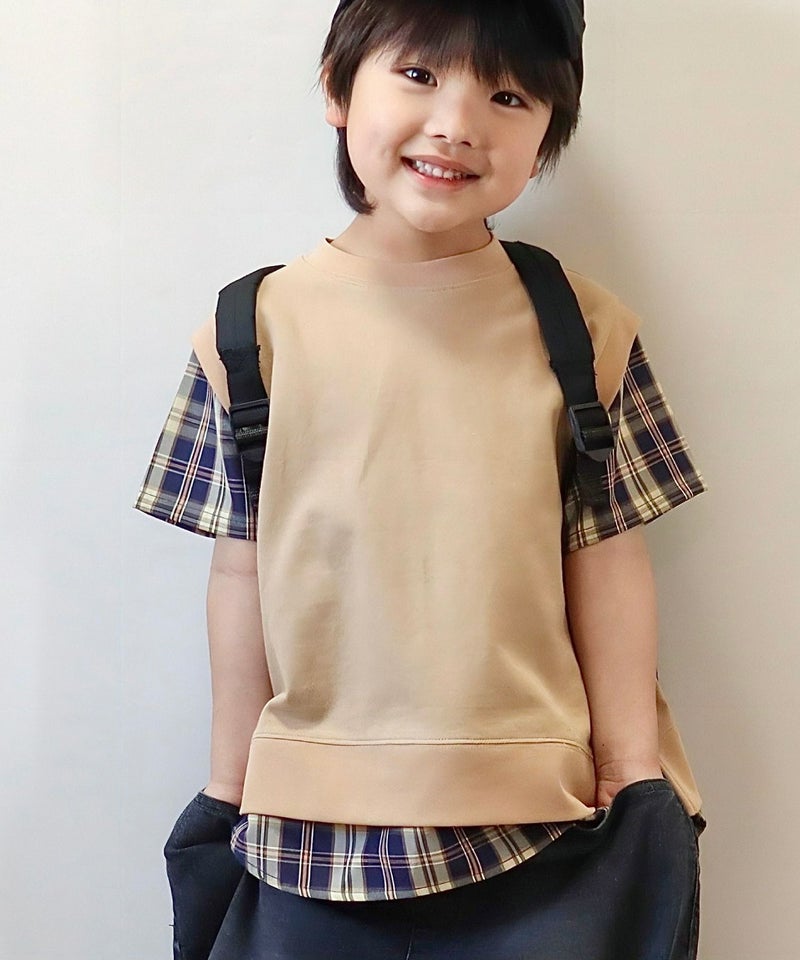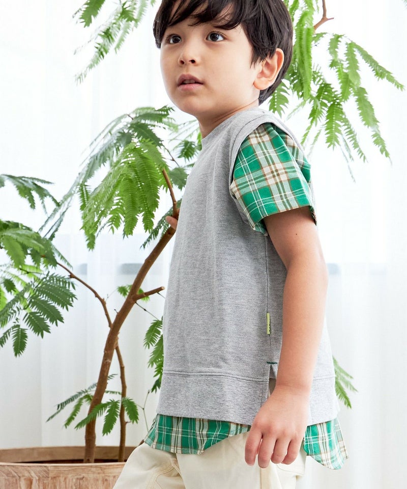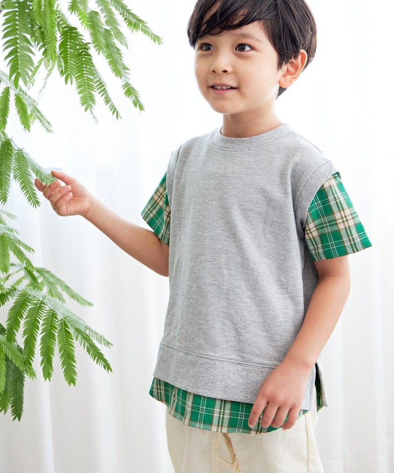 【セール】レイヤード風鹿の子半袖Tシャツ■90~140cm