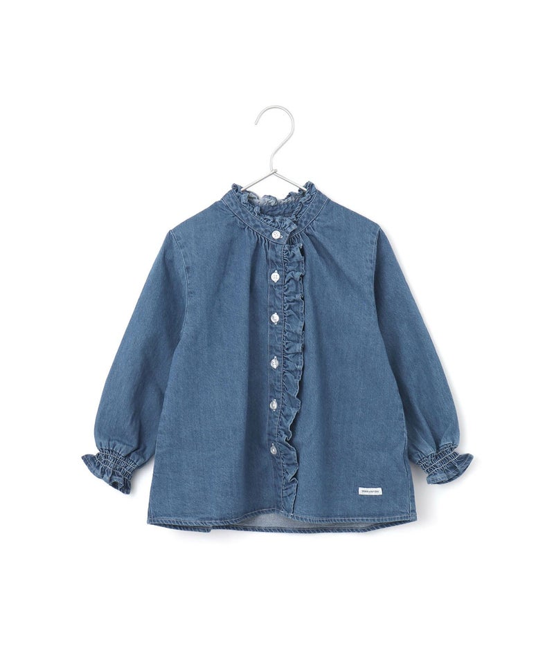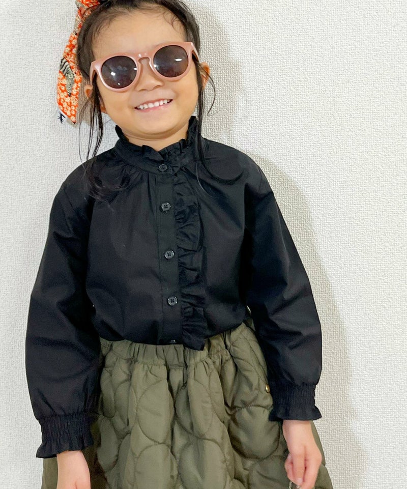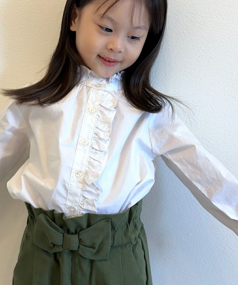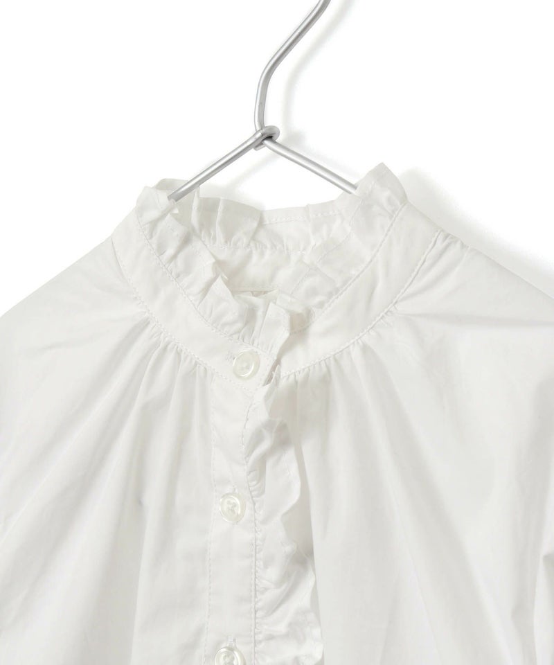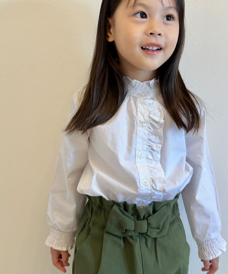 オトナも欲しくなるトレンドデザインのブラウス♪バンドカラーでフリルのついたブラウス。