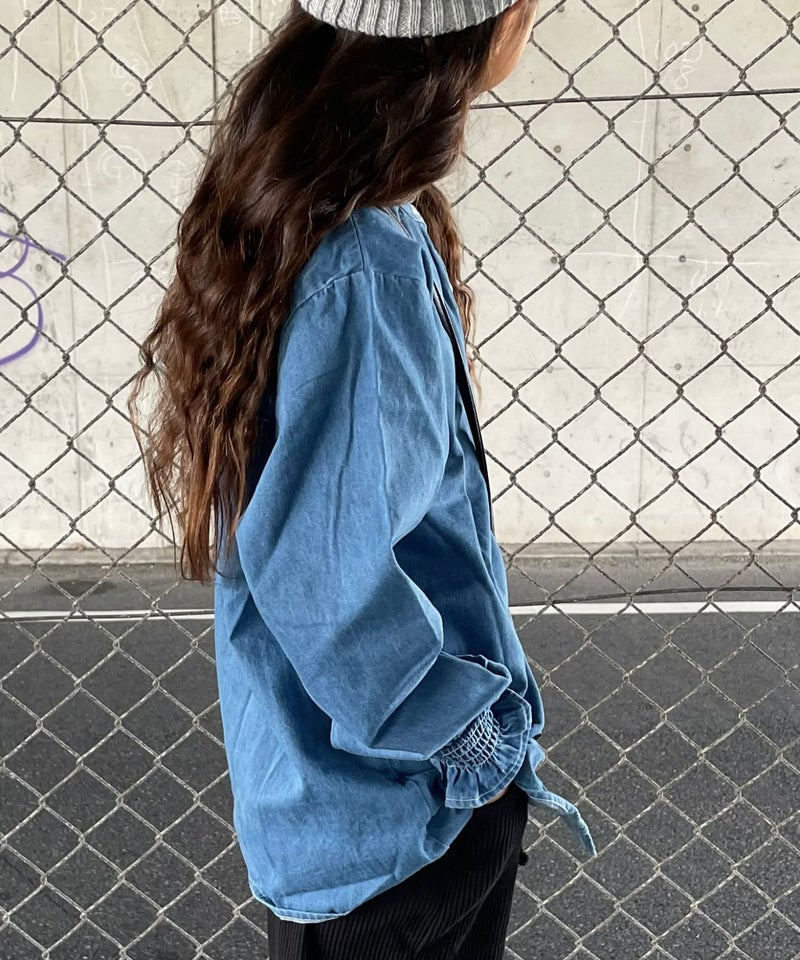 袖口にはたっぷりのシャーリングで袖のシルエットラインがとってもきれいなデザインです◎