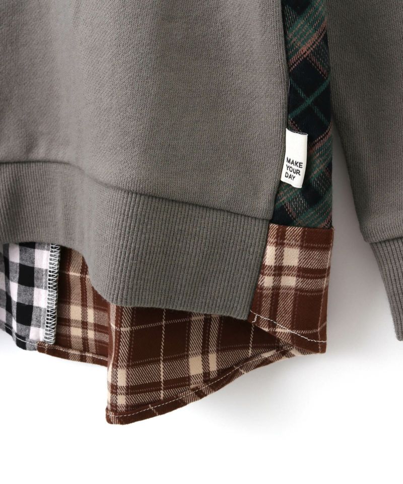 いろんなチェックの柄をパッチワークしたトレーナー。