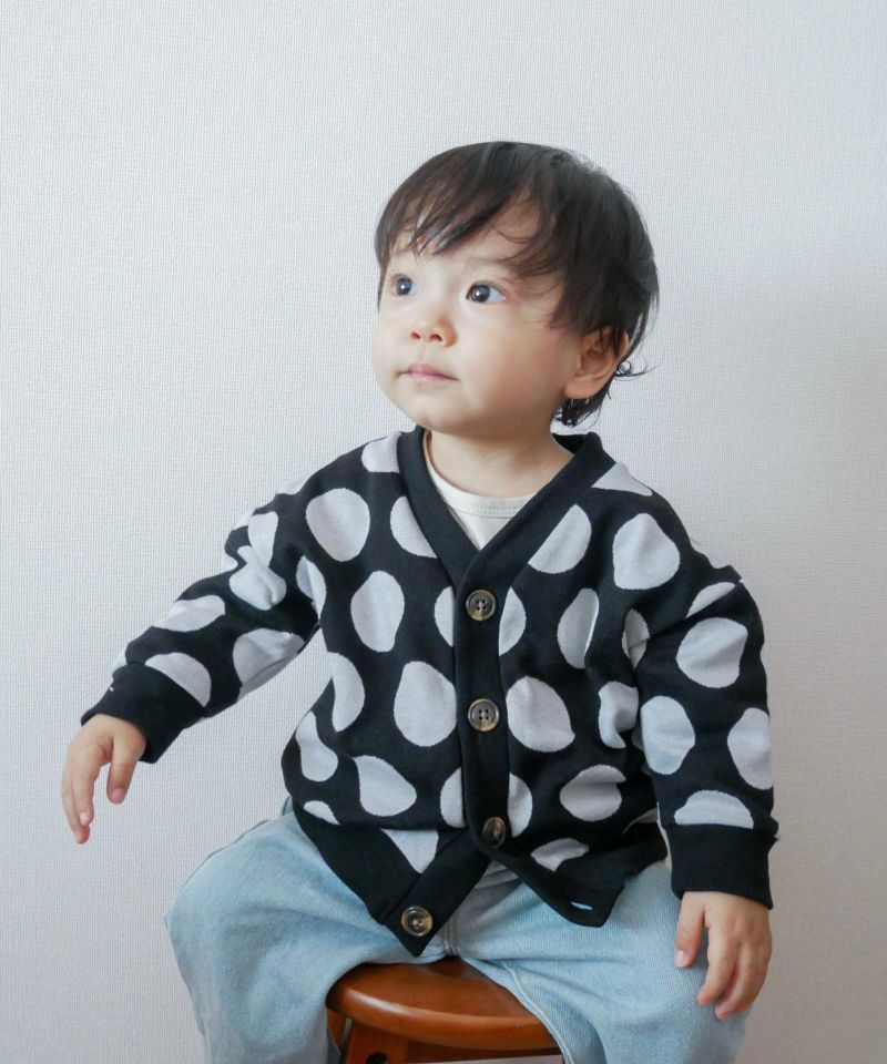 【セール】アーガイルとドットのジャガードカーディガン■80~140cm