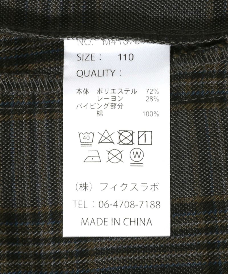 ブラック●本体)綿97% ポリウレタン3% ポケット袋布・バイアス)綿100% グレー●本体)ポリエステル72% レーヨン28% ポケット袋布・バイアス)綿100%