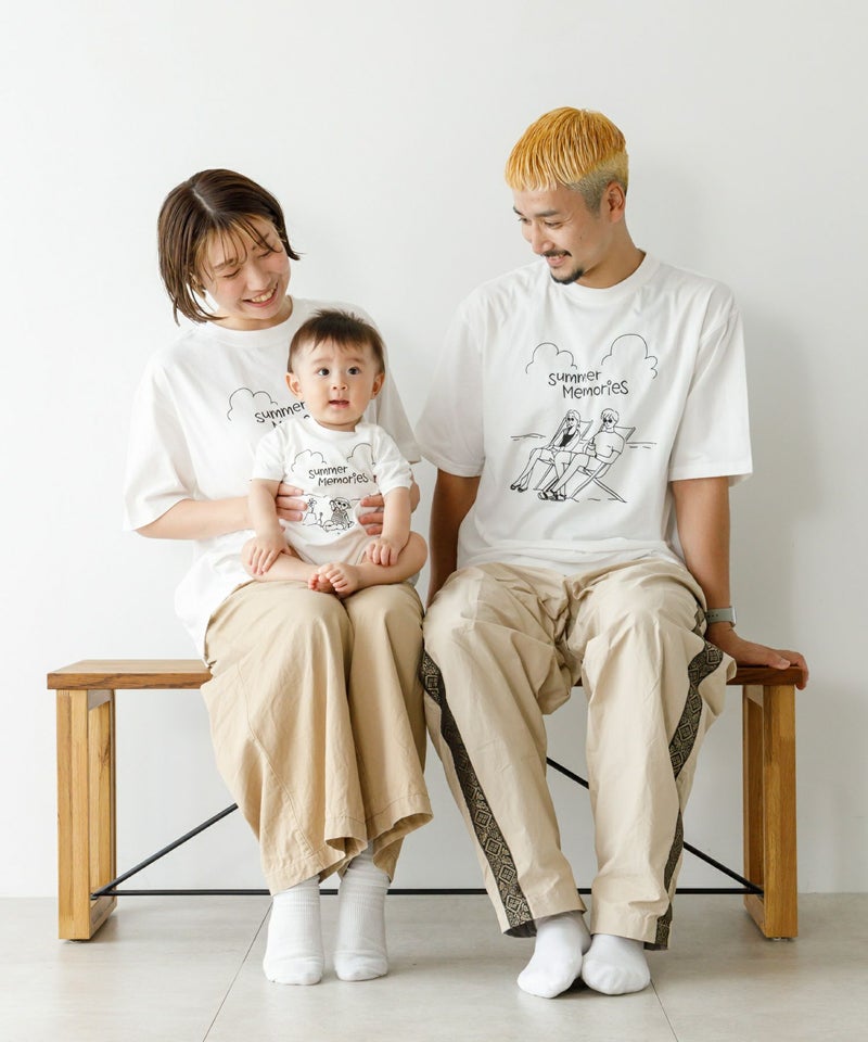 夏休みの海でのひと時をイメージしたこのファミリーTシャツはそんなオソロイコーデにもってこいです◎