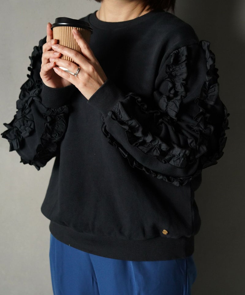【セール】たっぷり袖フリル裏毛トレーナー■ママサイズ
