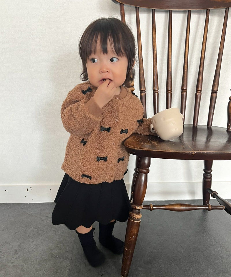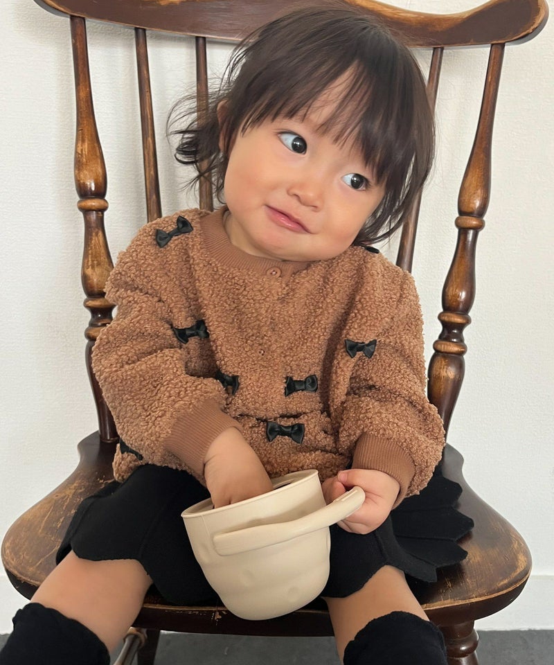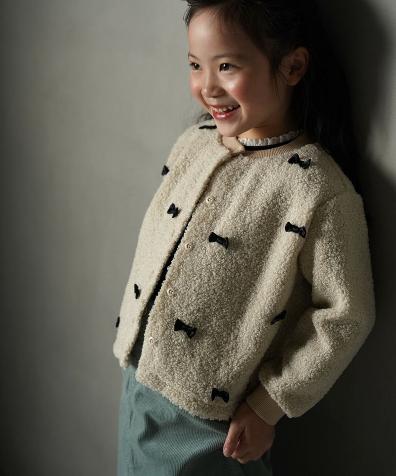【セール】リボンたっぷりブークレーカーディガン■80~140cm