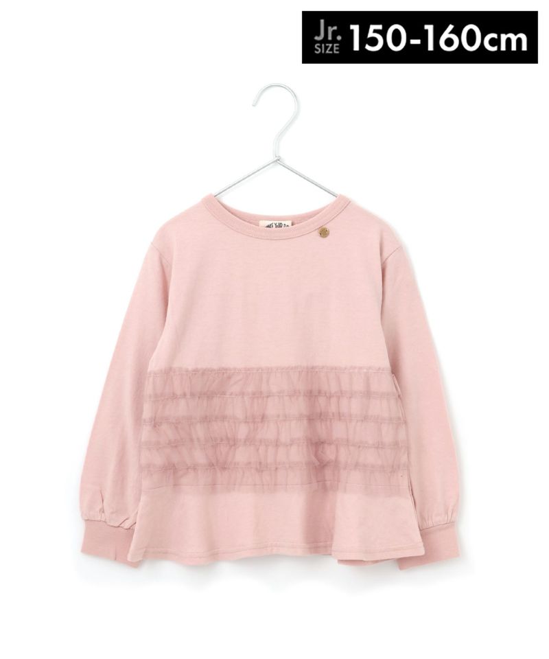 【セール】ママとおそろいチュールフリル長袖Tシャツ■150.160cm