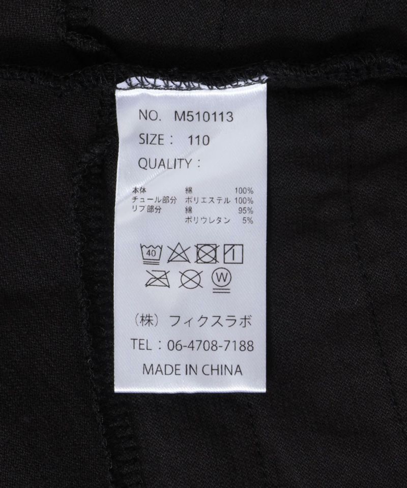 本体)綿100% チュール部分)ポリエステル100% リブ部分)綿95% ポリウレタン5%