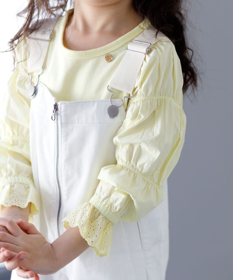 袖にアクセントがあるのでビスチェやオーバーオール、ジャンパースカートとの相性がバツグン◎