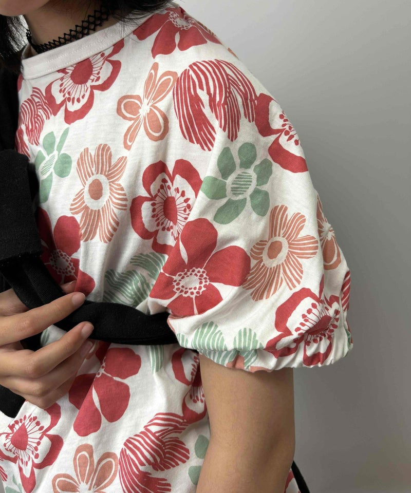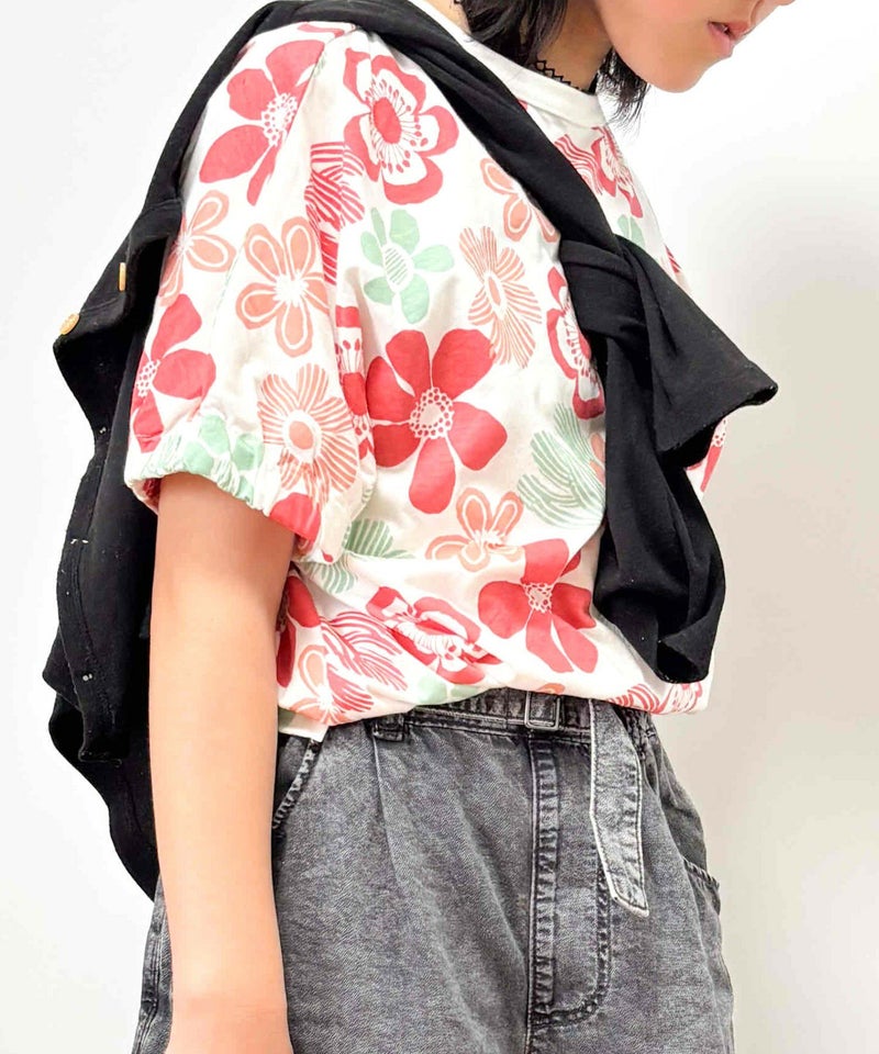 【セール】おっきなお花総柄半袖Tシャツ■150.160cm