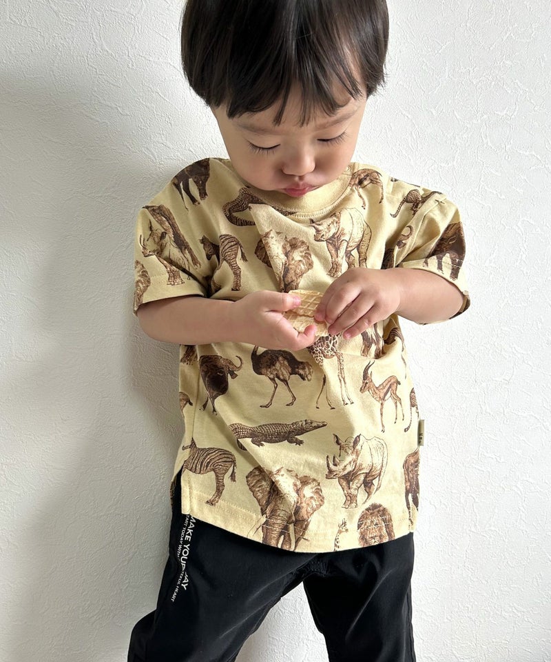 【セール】リアルアニマル総柄半袖Tシャツ■80~140cm