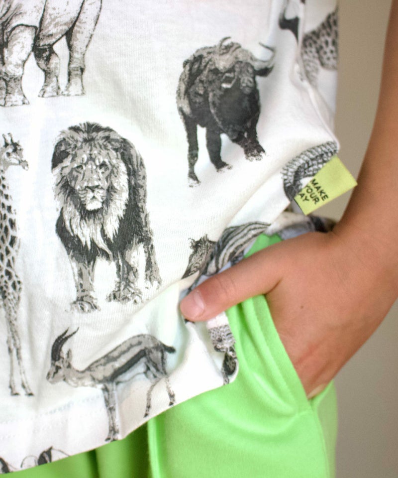 かわいらしい動物柄のTシャツはたくさんあるから、メイクユアデイでは徹底的にリアルな動物柄にしてみました。