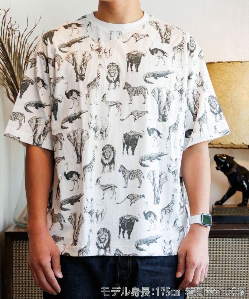 【セール】リアルアニマル総柄半袖Tシャツ■パパサイズ