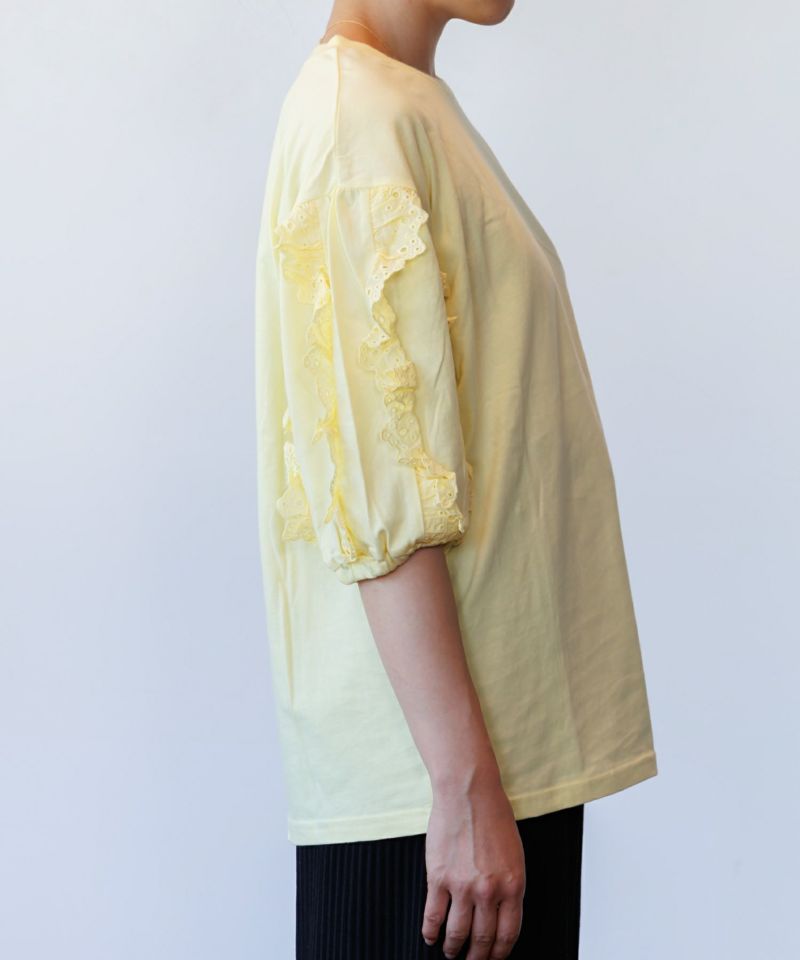 本体)綿100%リブ部分)綿95% ポリウレタン5% 袖レース部分)綿100%