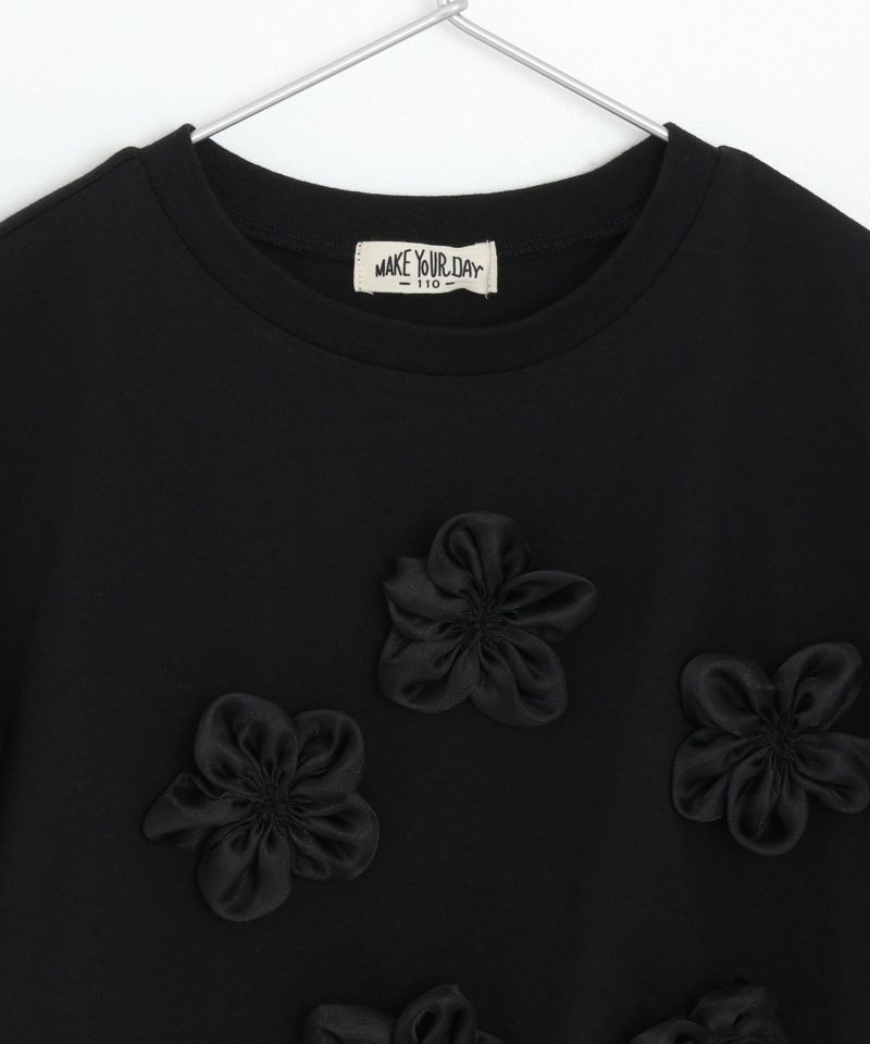 シンプルな無地のTシャツと見せかけて、実はおっきな立体的なお花がぽこぽこどんっとついているインパクトあるTシャツ。