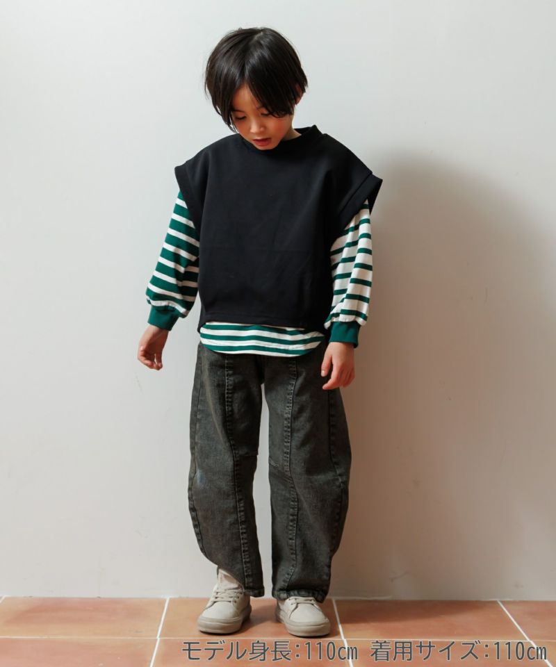 前後着用できるボーダー長袖Tシャツ■80~140cm