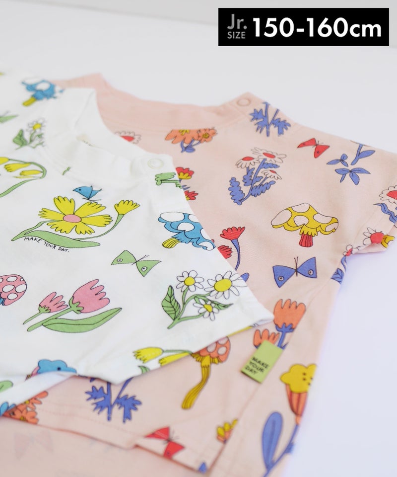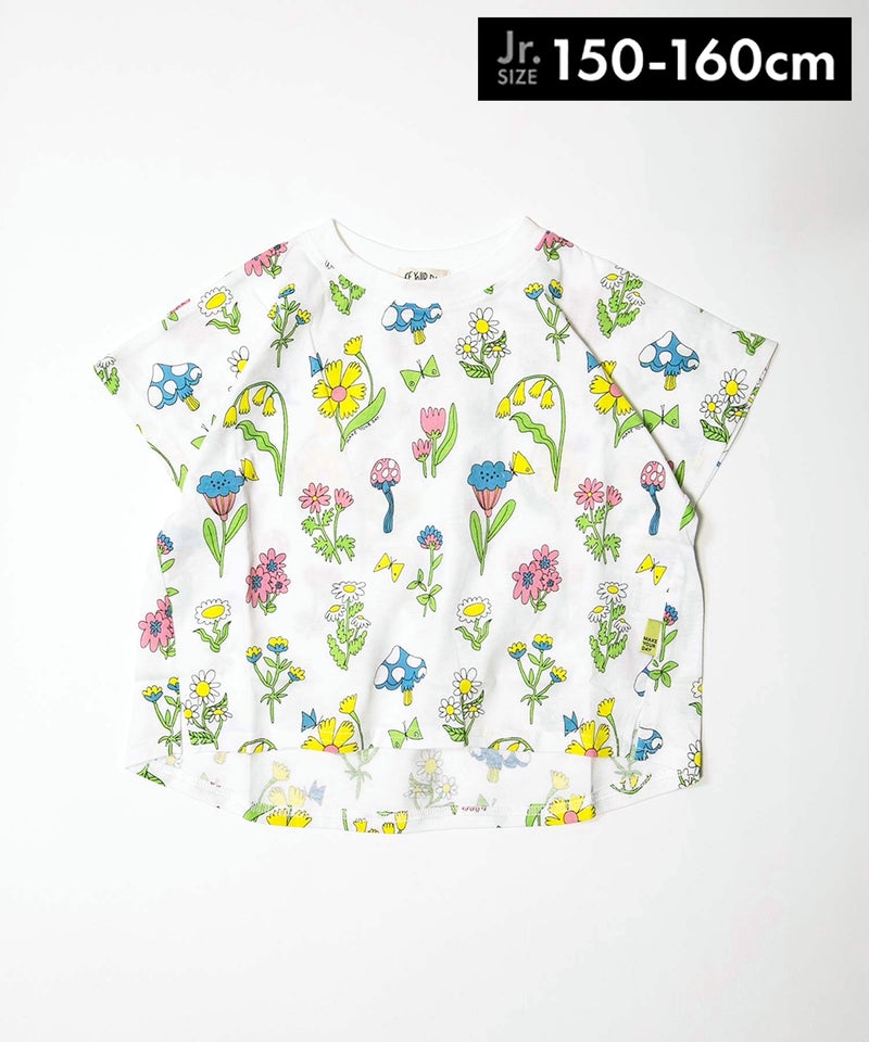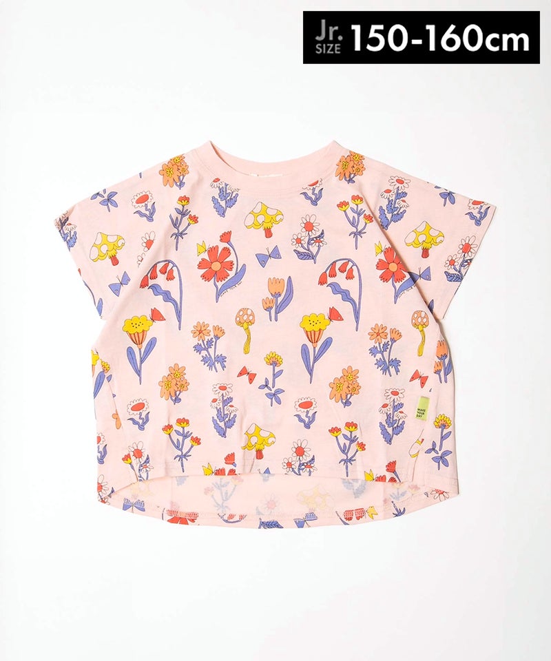 レトロフラワー総柄変形半袖Tシャツ■150.160cm