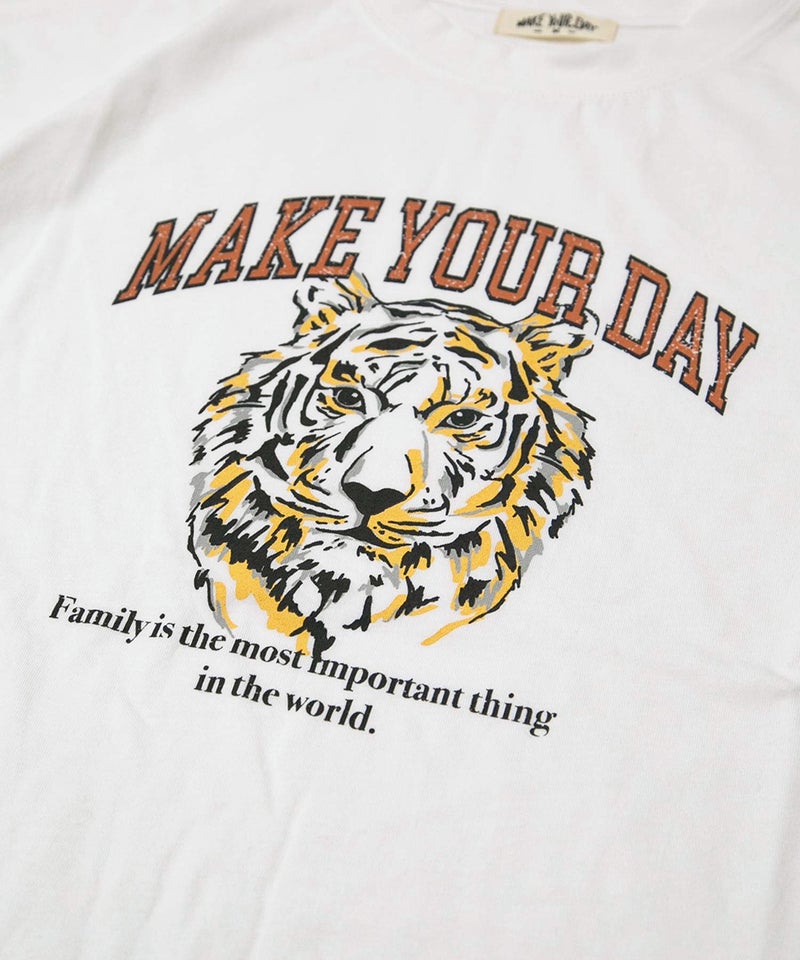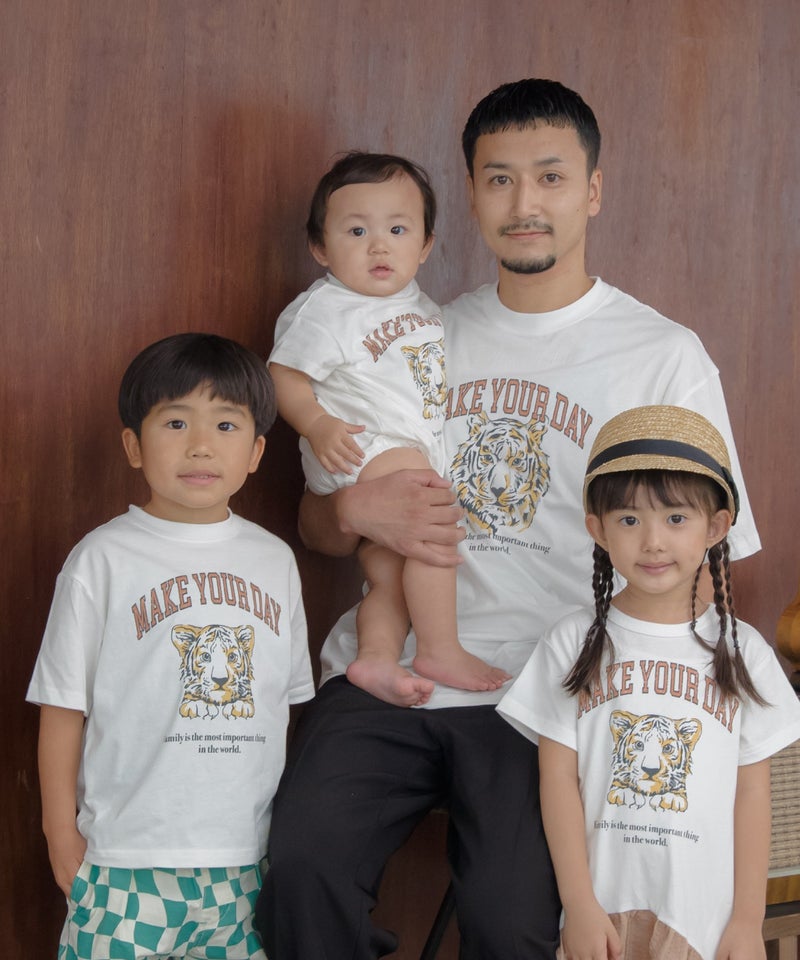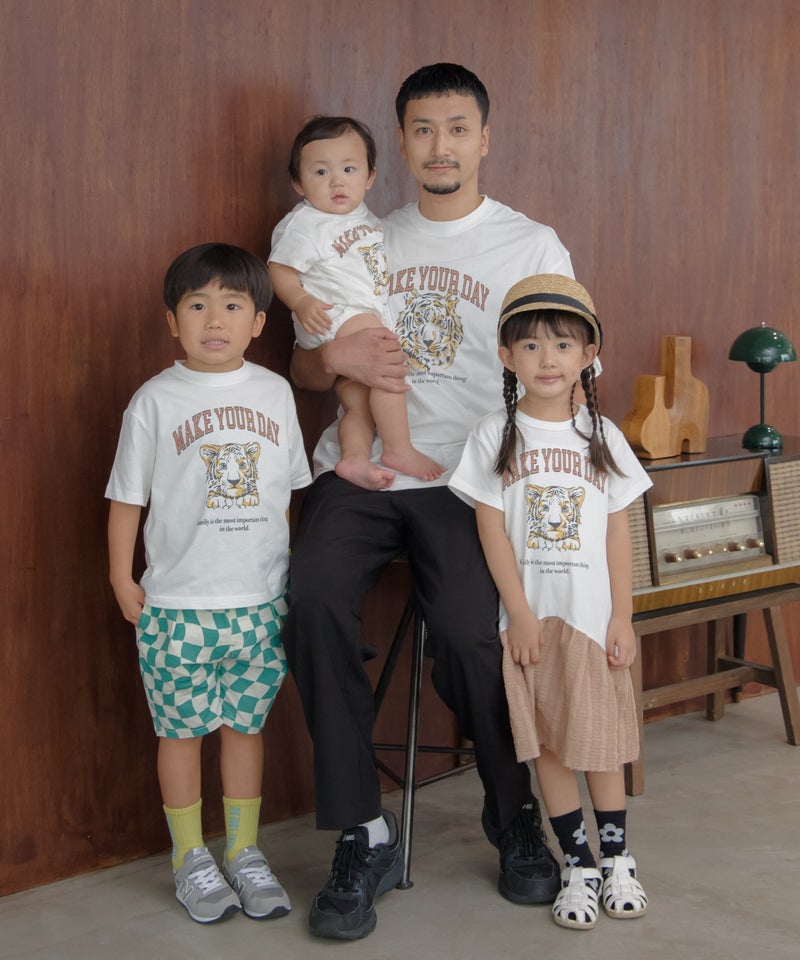 ベビーからジュニアサイズには子トラのイラスト、パパサイズには親トラのイラストをあしらったファミリーTシャツです。