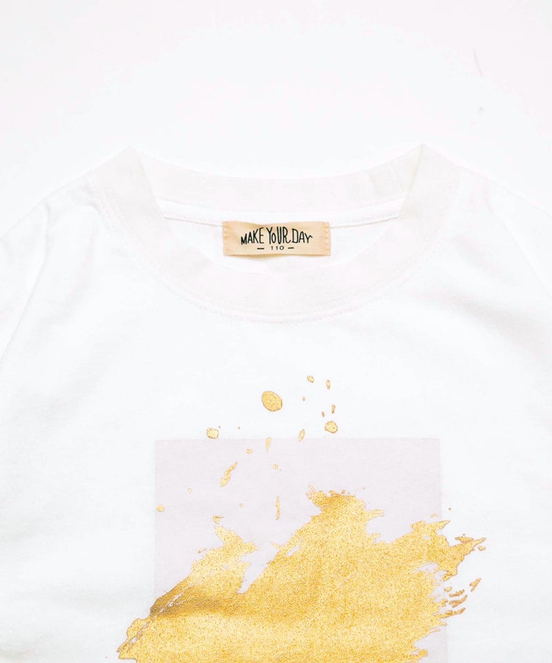 アーティスティックにゴールドとシルバーをペイントしたシンプルなTシャツ。