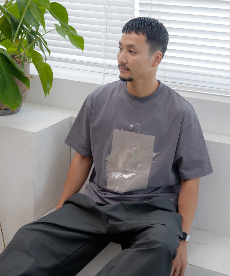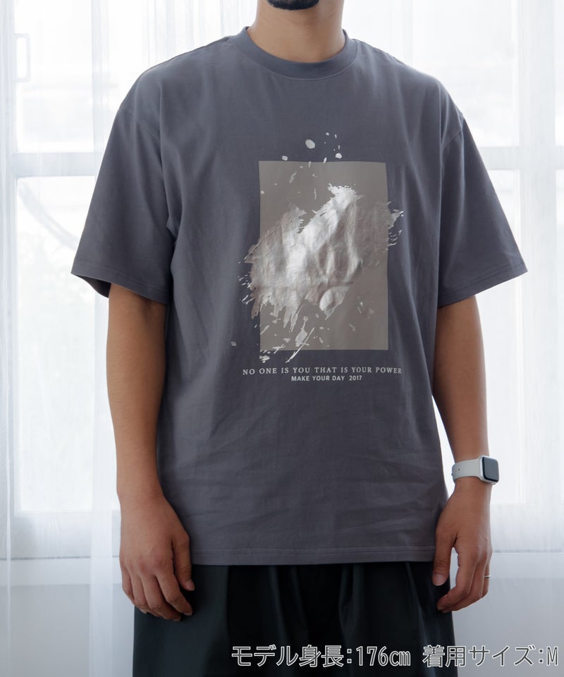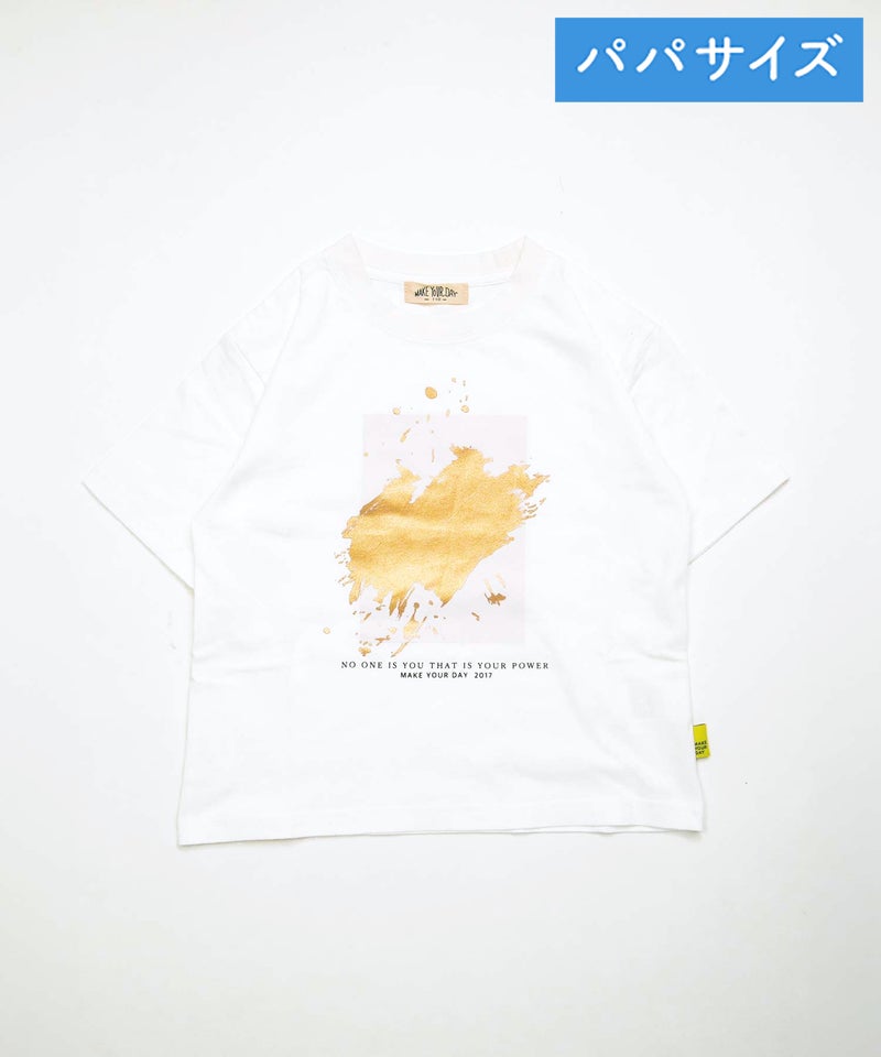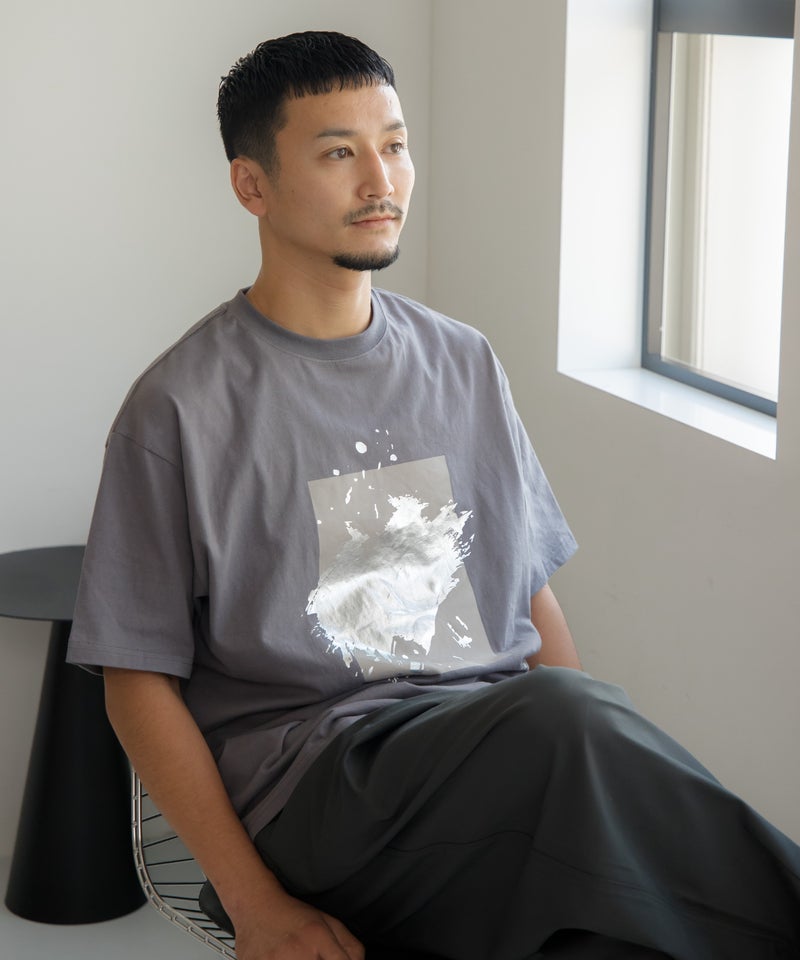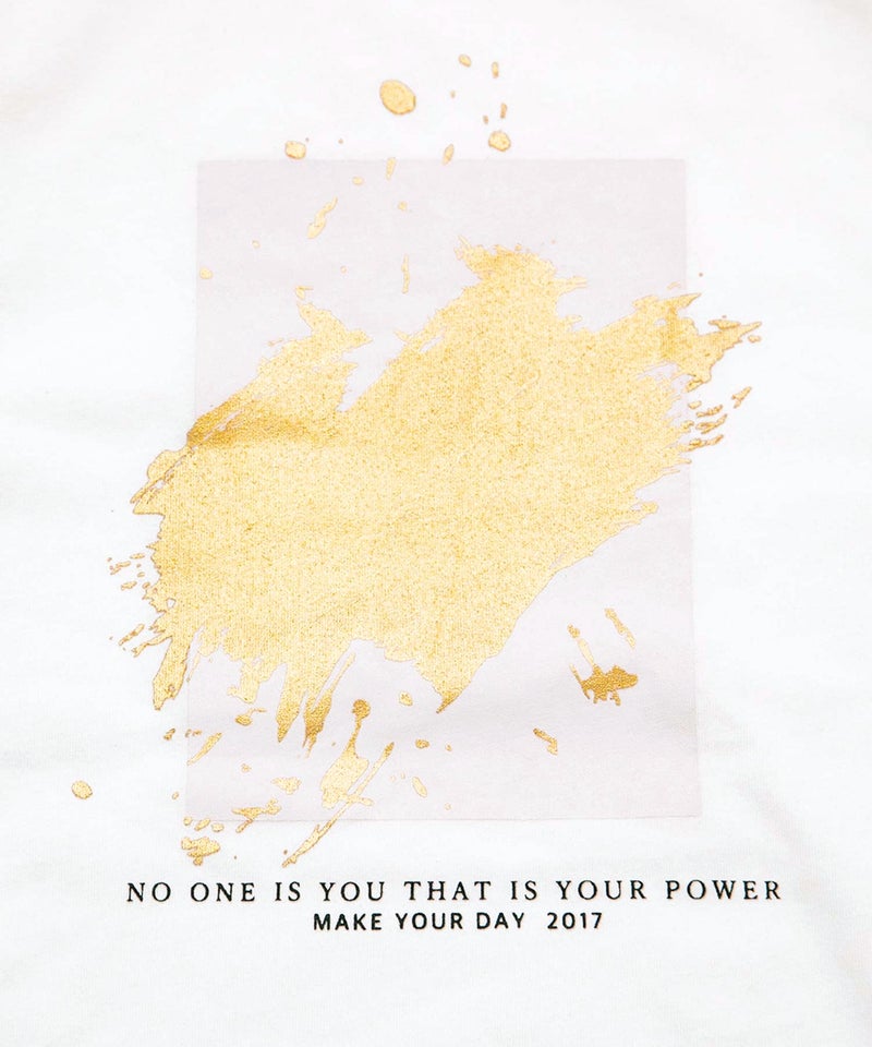 アーティスティックにゴールドとシルバーをペイントしたシンプルなTシャツ。