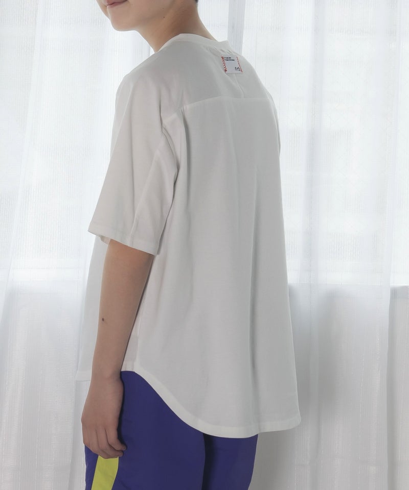 このTシャツは右肩、左肩、袖下、前後身頃と細かくパーツに分けてくっつけたようなデザイン。