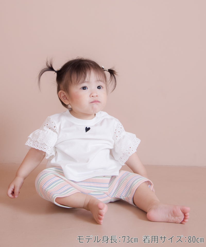 ハートアイコンフリル袖半袖Tシャツ■80~140cm