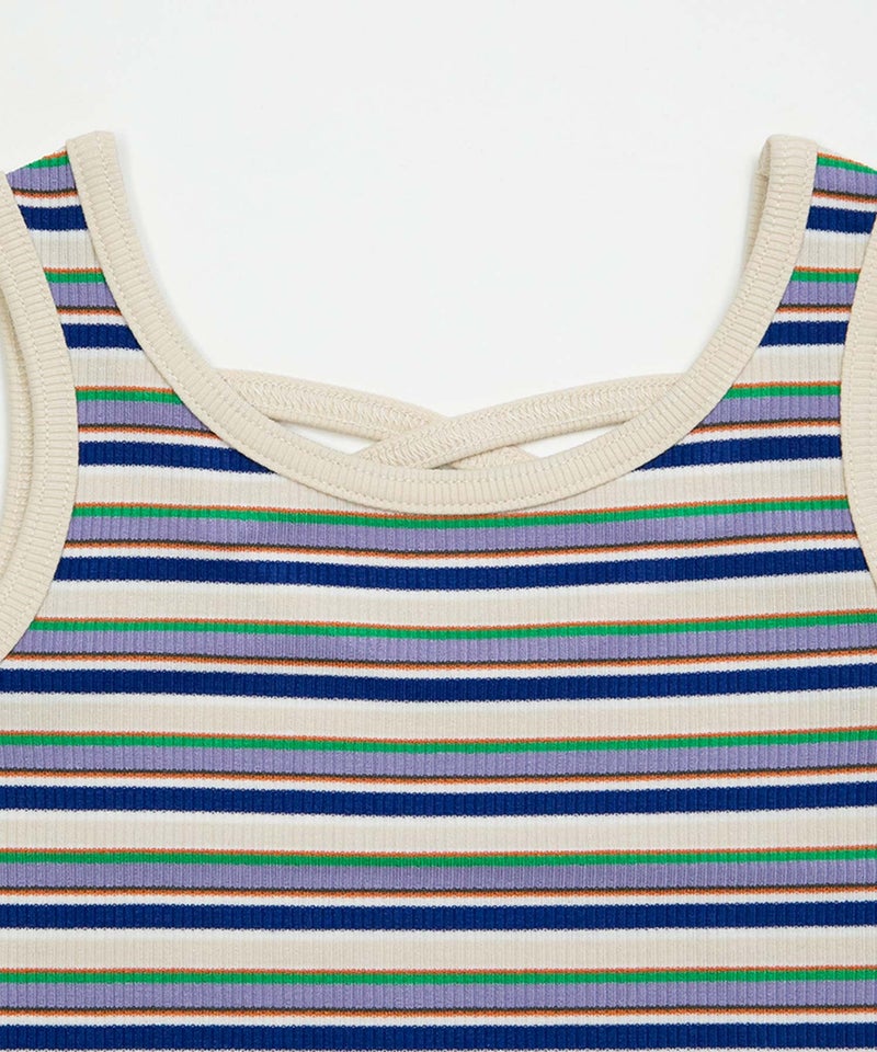 ブラウスやシャツのインナーにしたり、カジュアルに1枚で合わせたり、なんだかんだあると便利な無地ボーダーのタンクトップ。