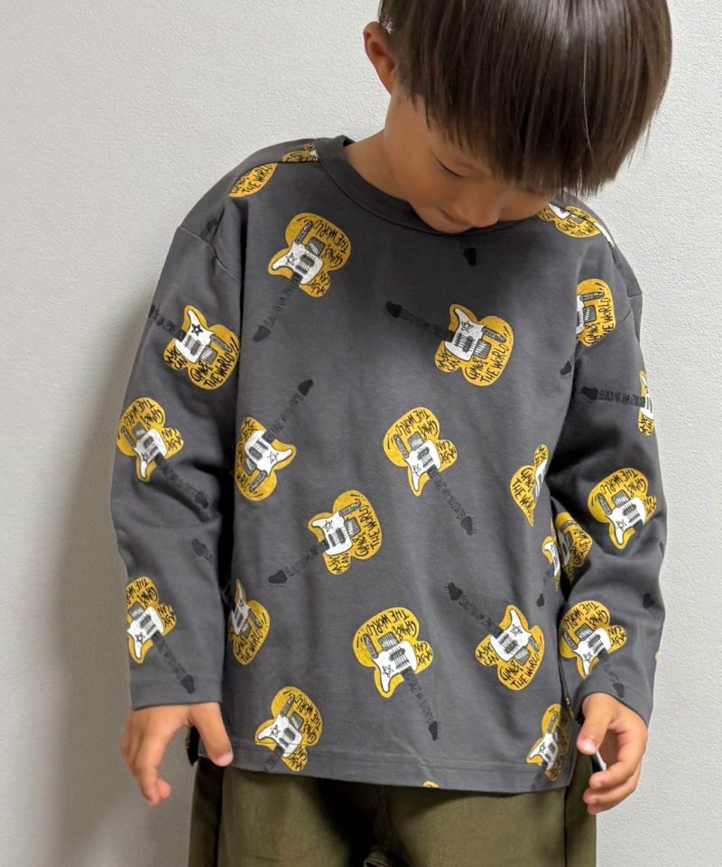 エレクトリックギター総柄長袖Tシャツ■80~140cm