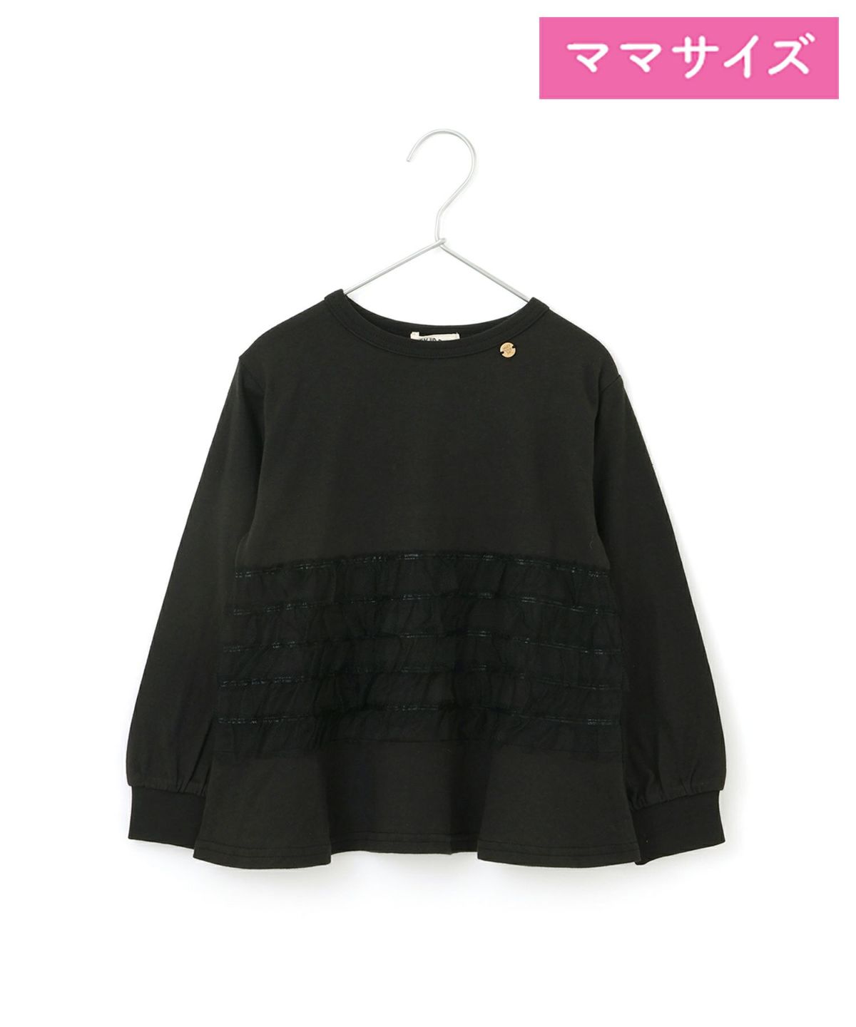 【セール】ママとおそろいチュールフリル長袖Tシャツ■ママサイズ