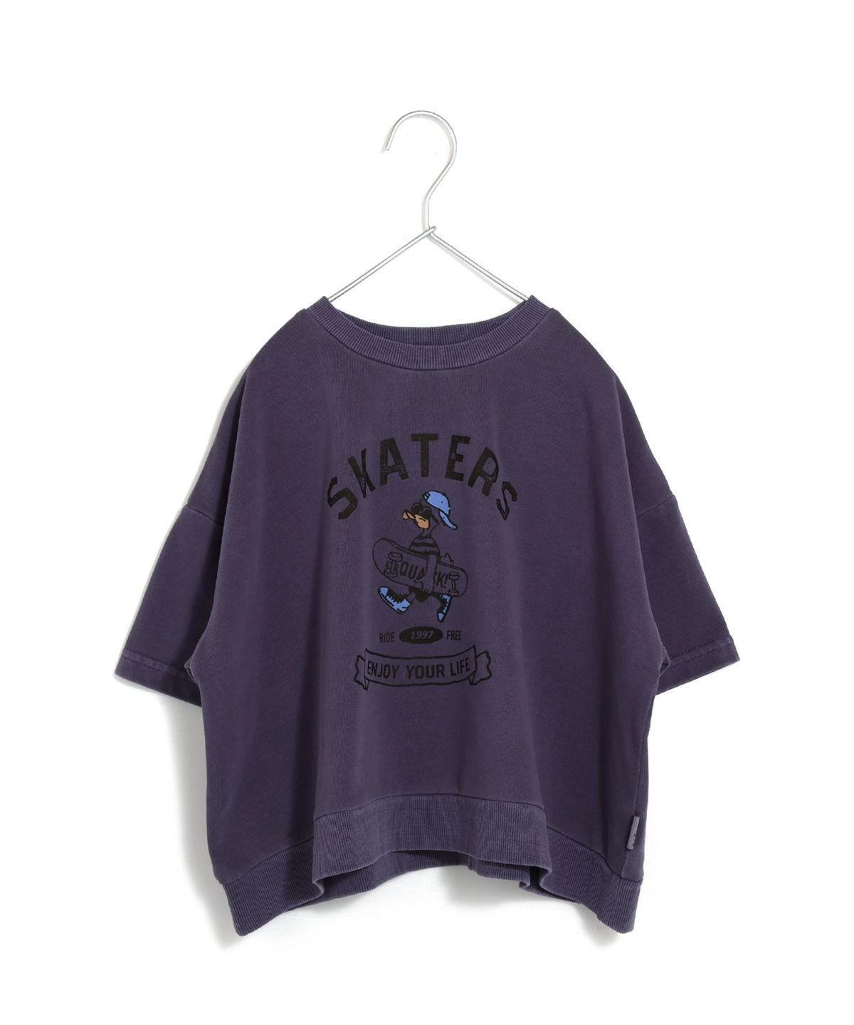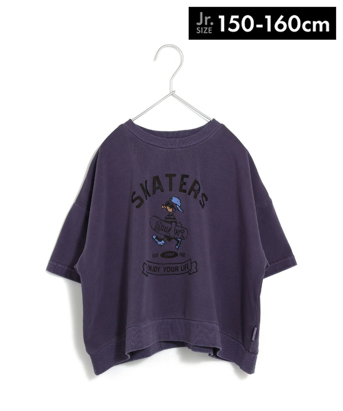 製品染めミニ裏毛7分袖Tシャツ■150.160cm