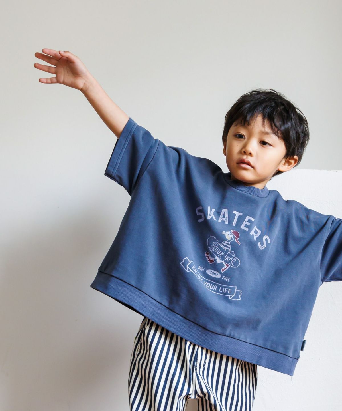 製品染めミニ裏毛7分袖Tシャツ■80~140cm