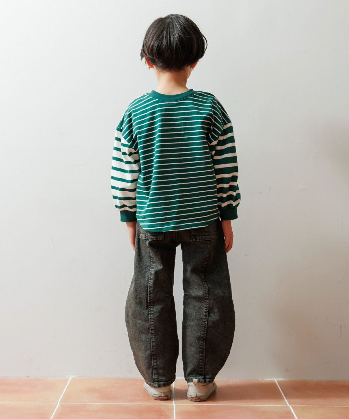 前後着用できるボーダー長袖Tシャツ■80~140cm