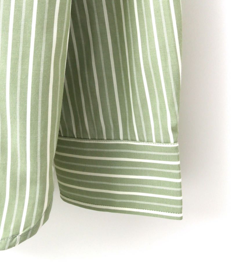 トレンドのバンドカラーで、シンプルでおしゃれなストライプ柄3色とフォーマルにも使える無地のオフホワイトの4色展開です◎