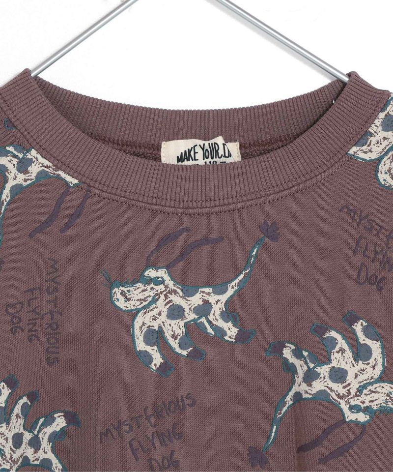 空飛ぶ犬総柄裏毛トレーナー■150.160cm