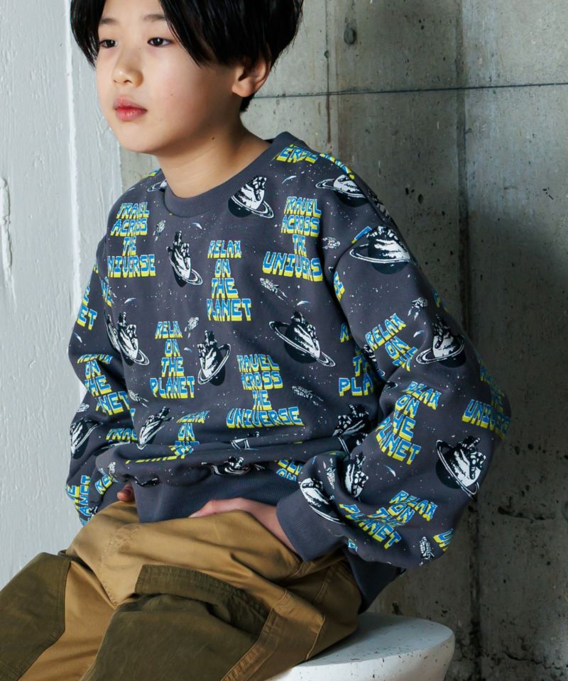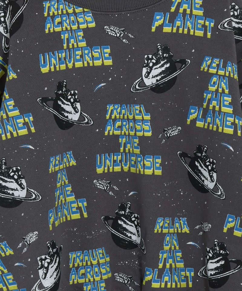 宇宙でひと休み総柄裏毛トレーナー■150.160cm