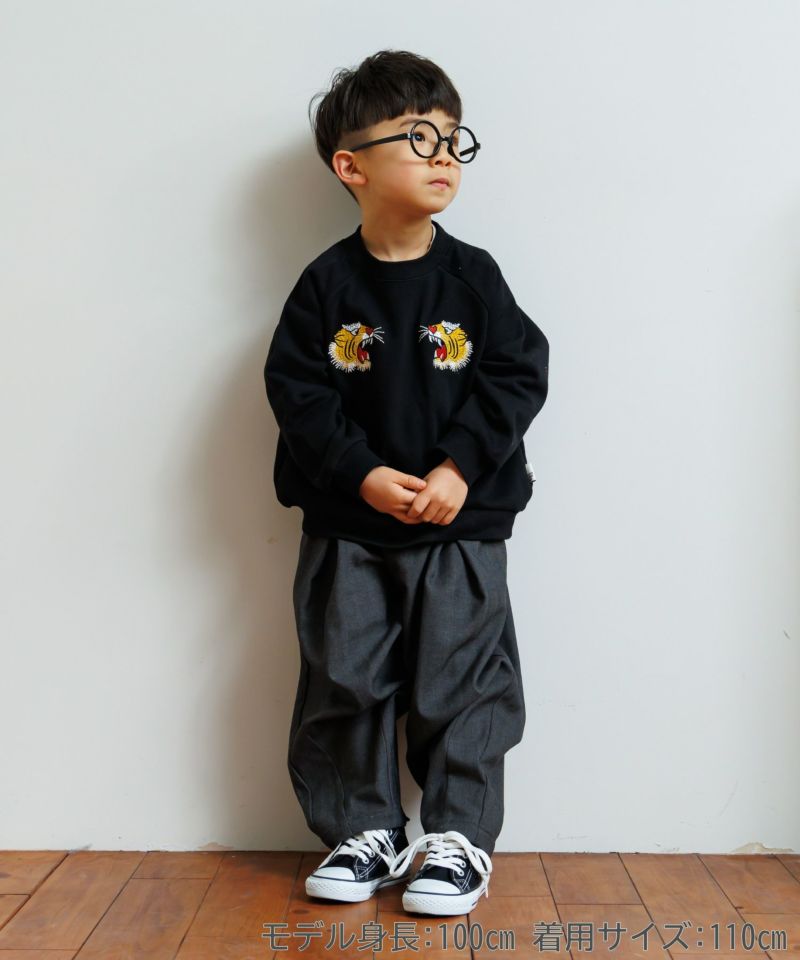 トラ刺繍ファミリー裏毛トレーナー■80~140cm