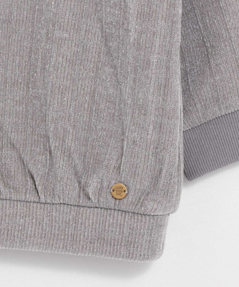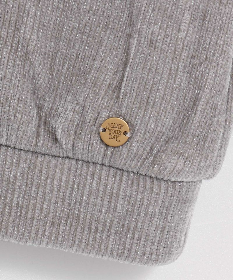 キラキラのラメ糸を引き揃えたニットのように見えて、厳密にはニットではないのでニットほど伸びてしまったり、ひっかけて糸が飛び出してきたり、がないプルオーバー。