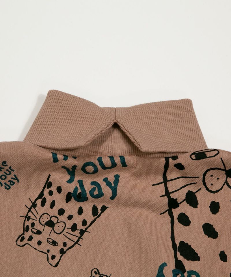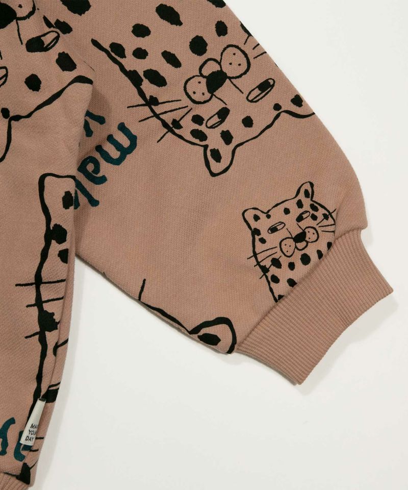 おとぼけヒョウ裏起毛総柄トレーナー■150.160cm