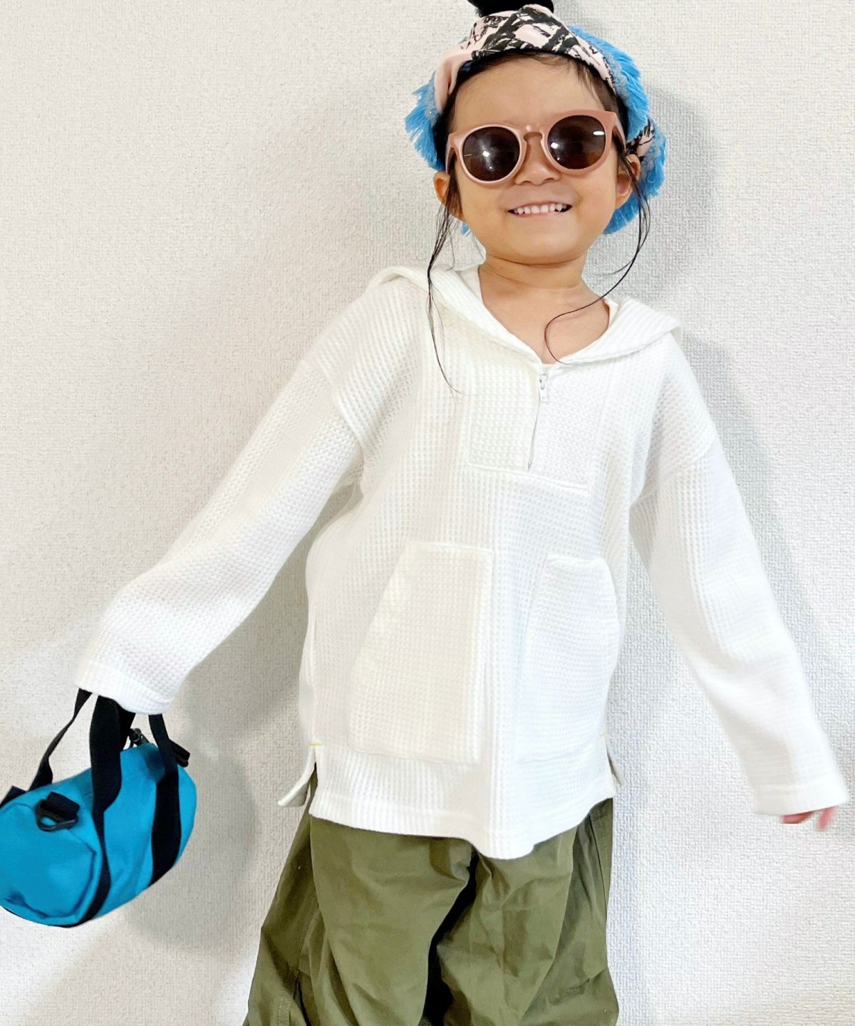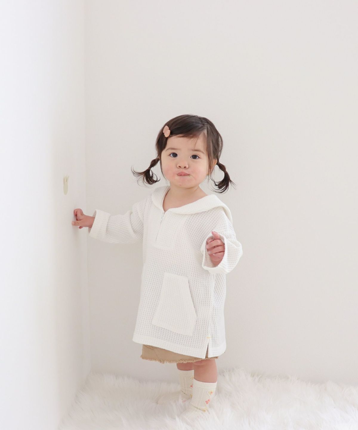 【セール】セーラーカラーワッフル長袖Tシャツ■90~140cm
