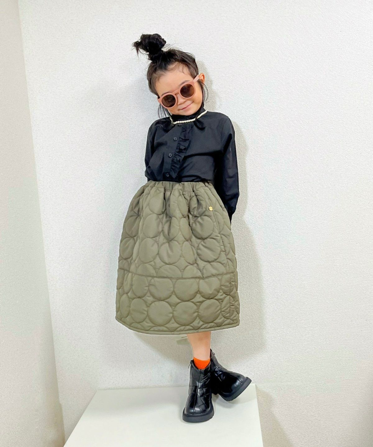 【セール】シャーリングパフスリーブ長袖Tシャツ■90~140cm