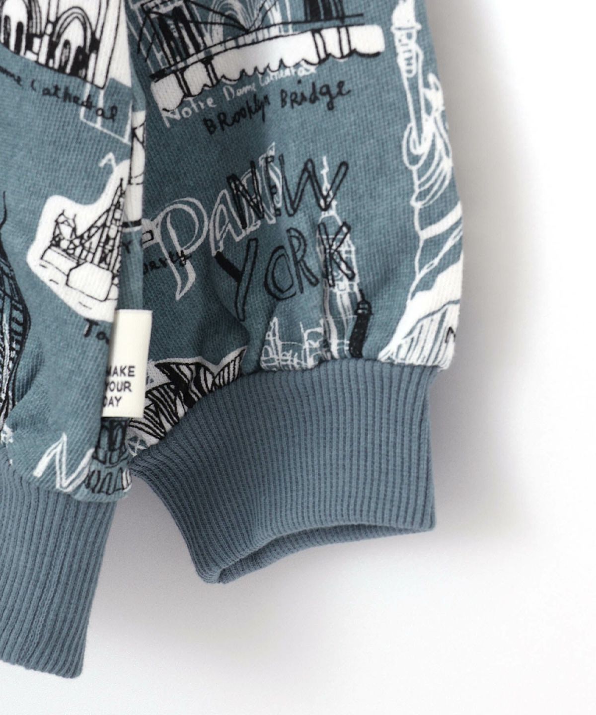 【セール】すごい建物総柄裏毛トレーナー■80~140cm