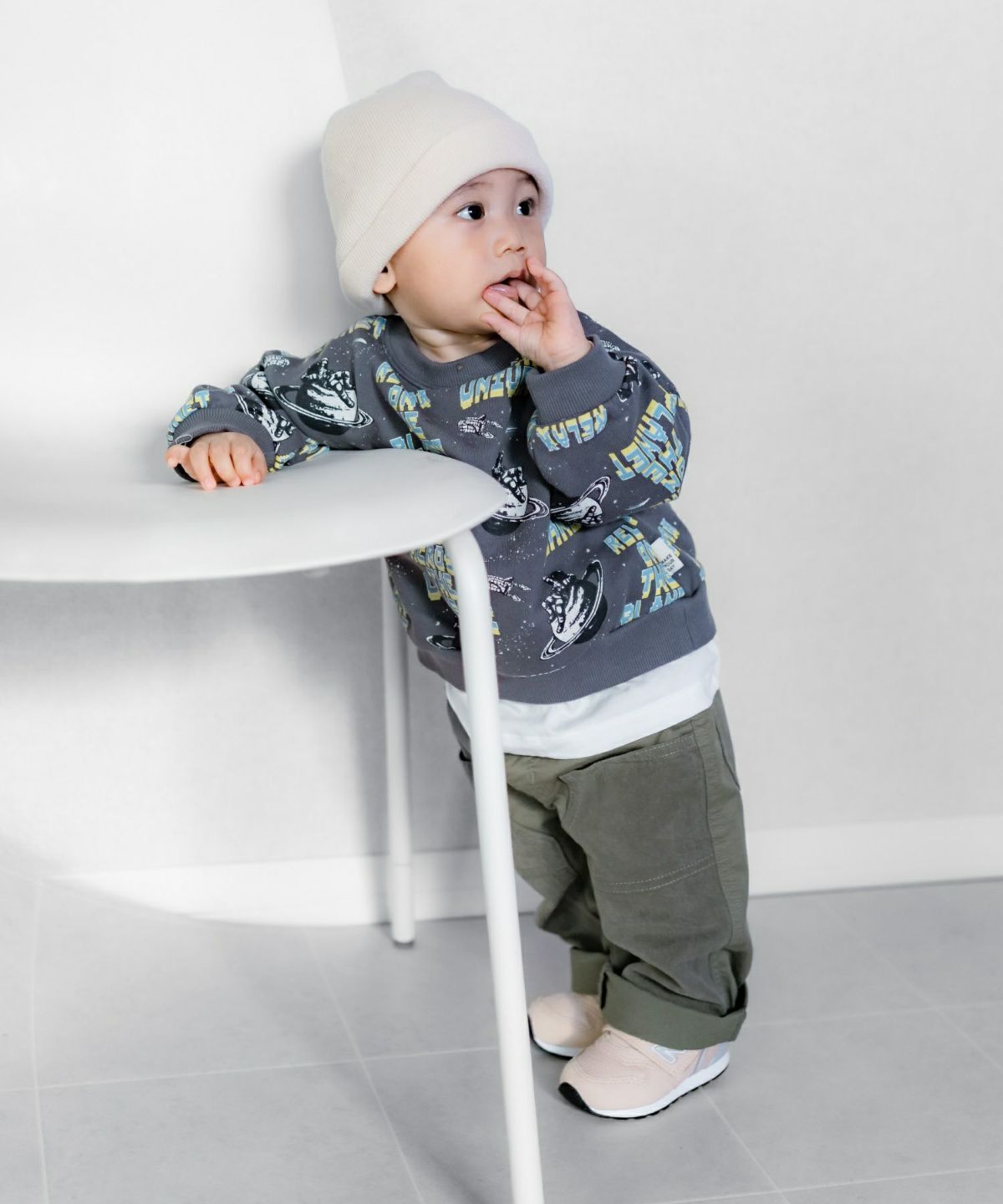 宇宙でひと休み総柄裏毛トレーナー■80~140cm