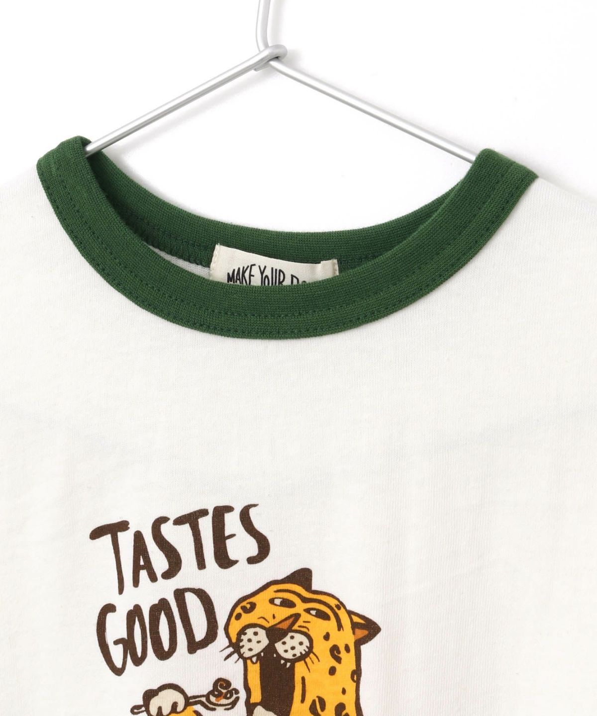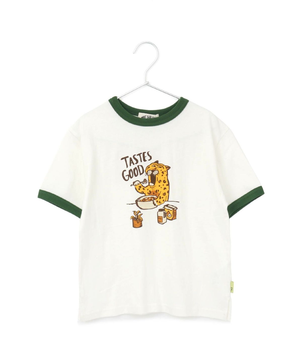 【セール】ヒョウの朝ごはんリンガー半袖Tシャツ■80~140cm