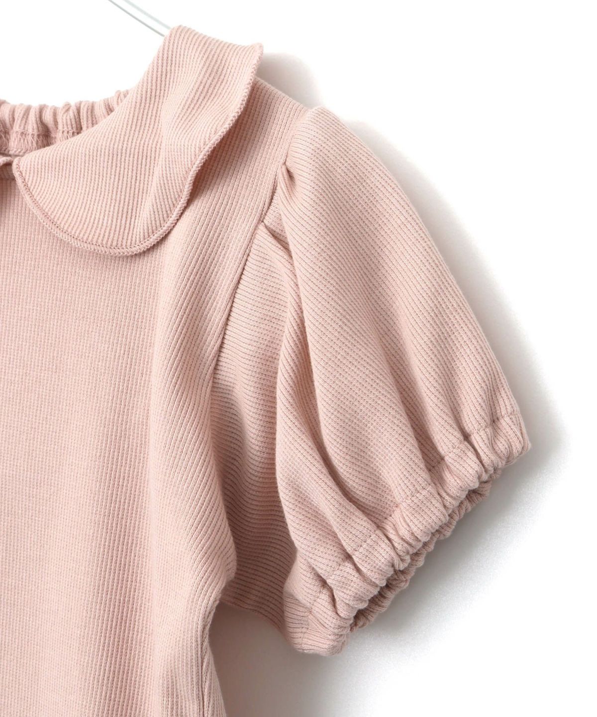 【セール】無地リブ襟付きパフスリーブロンパス