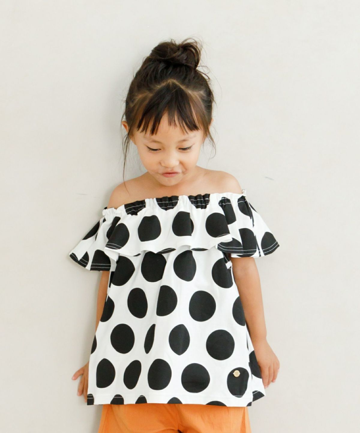 【セール】2WAYドット柄オフショルTシャツ■90~140cm