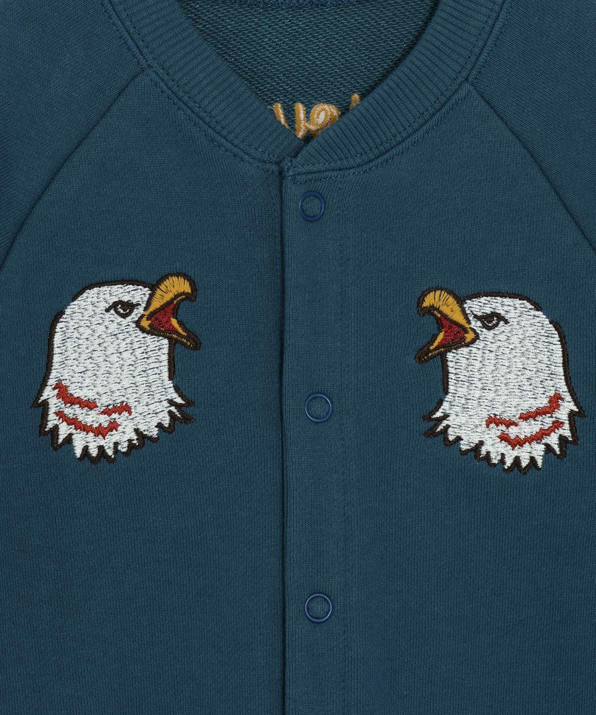 イーグル刺繍ファミリー長袖前開きカバーオール